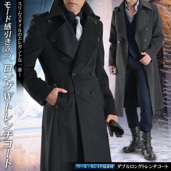 超ロングコート ナポレオンコート ダブル トレンチコート メンズ ブラック 黒 グレー 送料無料 Cb01 スーツスタイルmarutomi ヤフー店 通販 Yahoo ショッピング